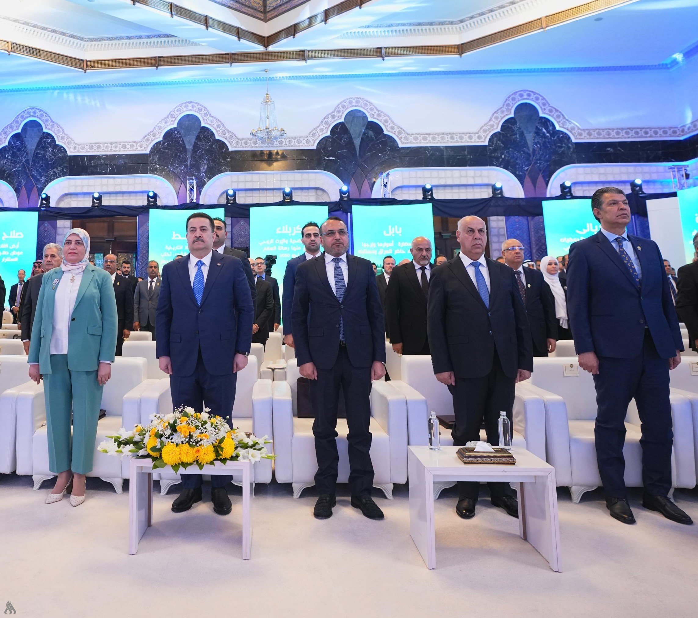 أكد رئيس الوزراء محمد شياع السوداني، اليوم السبت، أن رؤية 2050 رسالة العراق للعالم بأنه قرر النهوض واستعادة مكانته التاريخية. وقال رئيس الوزراء في كلمة له خلال احتفالية إطلاق رؤية العراق 2050، وتابعته وكالة الانباء العراقية (المستقلة)، أن "الوقود الاحفوري لا يمكن الركون اليه كعامل أحادي للأقتصاد الوطني"، مشيرا الى ان "الكوارث المناخية والبيئية بدأت تدك أركان الامن الغذائي والمائي للدول". ولفت الى انه "يتحتم علينا القيام بمعالجات استباقية مبكرة لتفادي أي أزمة أن وقعت"، مبيناً أنه "وقعنا عقد استشاري لتنفيذ مراحل التغيير وفق رؤية العراق 2050". وتابع: "الحكومة بادرت وللمرة الأولى بإطلاق وثيقة السياسات التنفيذية لحوكمة منظومة الاستراتيجيات"، مؤكداً أن "حرص الإتجاه العام لرؤية العراق 2050 ان يغطي القطاعات الشاملة لمعالجة الفجوات في مؤسسات الدولة". واشار الى انه "شكلنا الفريق الوطني لتطوير رؤية وطنية شاملة واقتراح برامج وحلول لتنويع الاقتصاد العراقي". |