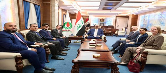 بحث نائب رئيس مجلس الوزراء لشؤون الطاقة وزير النفط حيان عبدالغني مع رئيس الجامعة الأمريكية في بغداد "براد كوك" المجالات العلمية والتقنية بما يخدم تطوير الصناعات النفطية .