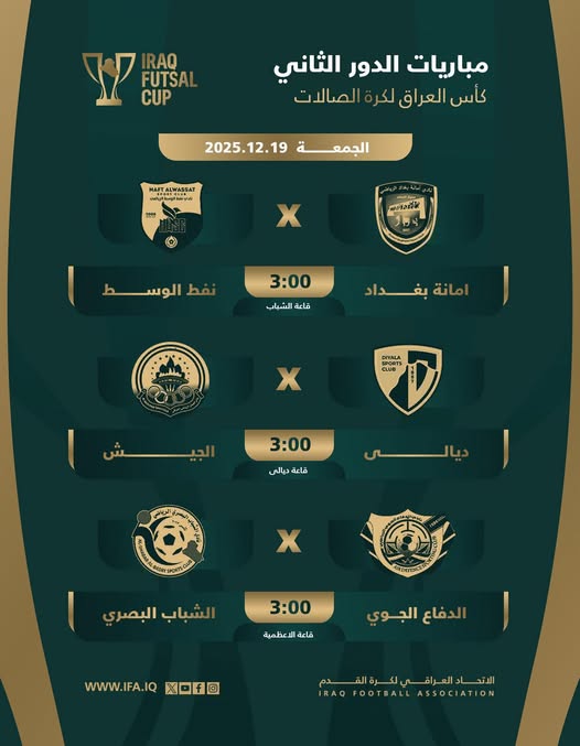 وكالة الأنباء العراقية المستقلة بغداد ,, حددت لجنة المسابقات في الاتحاد العراقي لكرة القدم، يوم الجمعة المقبل، موعدا لانطلاق منافسات الدور الثاني لبطولة كأس العراق لكرة الصالات. وستقام ثلاث مباريات يوم الجمعة المقبل في بغداد وديالى، تنطلق جميعها عند الساعة 3:00 عصراً. ويواجه فريق أمانة بغداد في قاعة نادي الشباب المغلقة في العاصمة، نفط الوسط القادم من محافظة النجف. بينما يواجه فريق ديالى، ضيفه الجيش القادم من بغداد في قاعة ديالى المغلقة للألعاب الرياضية. واخيراً ستكون قاعة نادي الأعظمية في بغداد مسرحاً لمواجه فريق الدفاع الجوي وضيفه الشباب البصري. |