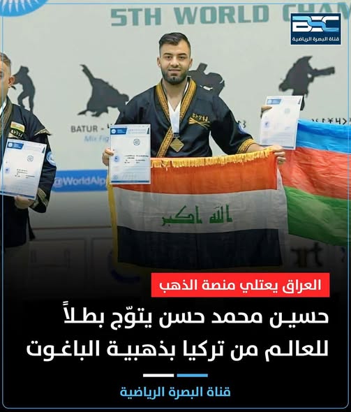 في إنجازٍ يليق باسم العراق وتاريخه الرياضي، حصد اللاعب حسين محمد حسن المركز الأول في بطولة العالم لرياضة الباغوت، التي أُقيمت في تركيا، بعد أداءٍ قوي ومسيرةٍ تنافسية أكدت حضوره بطلاً بين أبطال العالم.