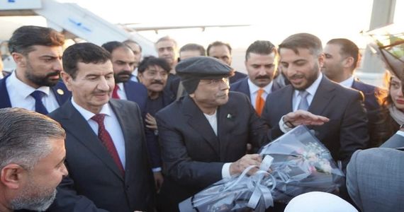 وكان في استقبال زرداري كبار المسؤولين في مجلس المحافظة والحكومة المحلية .