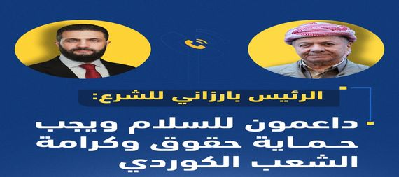 تلقى زعيم الحزب الديمقراطي الكردستاني مسعود بارزاني، مساء أمس الثلاثاء، اتصالاً هاتفياً من الرئيس السوري، أحمد الشرع.