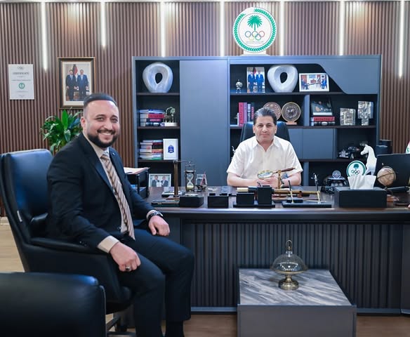 استقبل رئيس اللجنة الأولمبية الوطنية العراقية، الدكتور عقيل مفتن، في مكتبه بمقر اللجنة، القانوني المتخصص في الشأن الرياضي، السيد أسامة عدنان، وذلك لبحث السبل القانونية الكفيلة بحل الإشكالات التي تواجه الوسط الرياضي.
