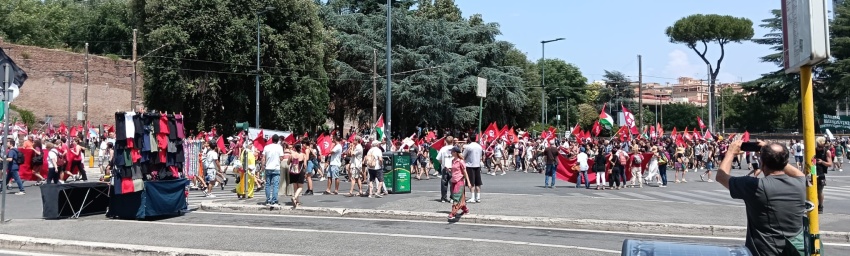 شهدت العاصمة الإيطالية روما، اليوم السبت، تظاهرة حاشدة شارك فيها الآلاف من أجل السلام، والتضامن مع الشعوب التي تتعرض للعدوان، وبالأخص الشعبين الفلسطيني والإيراني. ونددت التظاهرة بشكل خاص بـ "الإبادة الجماعية التي تمارسها إسرائيل تجاه الشعب الفلسطيني". شارك في التظاهرة عدد كبير من منظمات السلام، والجالية الفلسطينية في روما، وجمعية الصداقة الإيطالية العربية. وقالت الناشطة في جمعية الصداقة الإيطالية العربية، مدالينا تشيلانو، في لقاء مع الوكالة الوطنية للإعلام: "جئنا من جميع أنحاء إيطاليا لنعبر عن سخطنا وإدانتنا لسياسة الغرب المتواطئ مع العدوان على غزة، وضد الحرب الظالمة ضد الشعب الفلسطيني، وجئنا لنقول لا لسياسة سباق التسلح". |