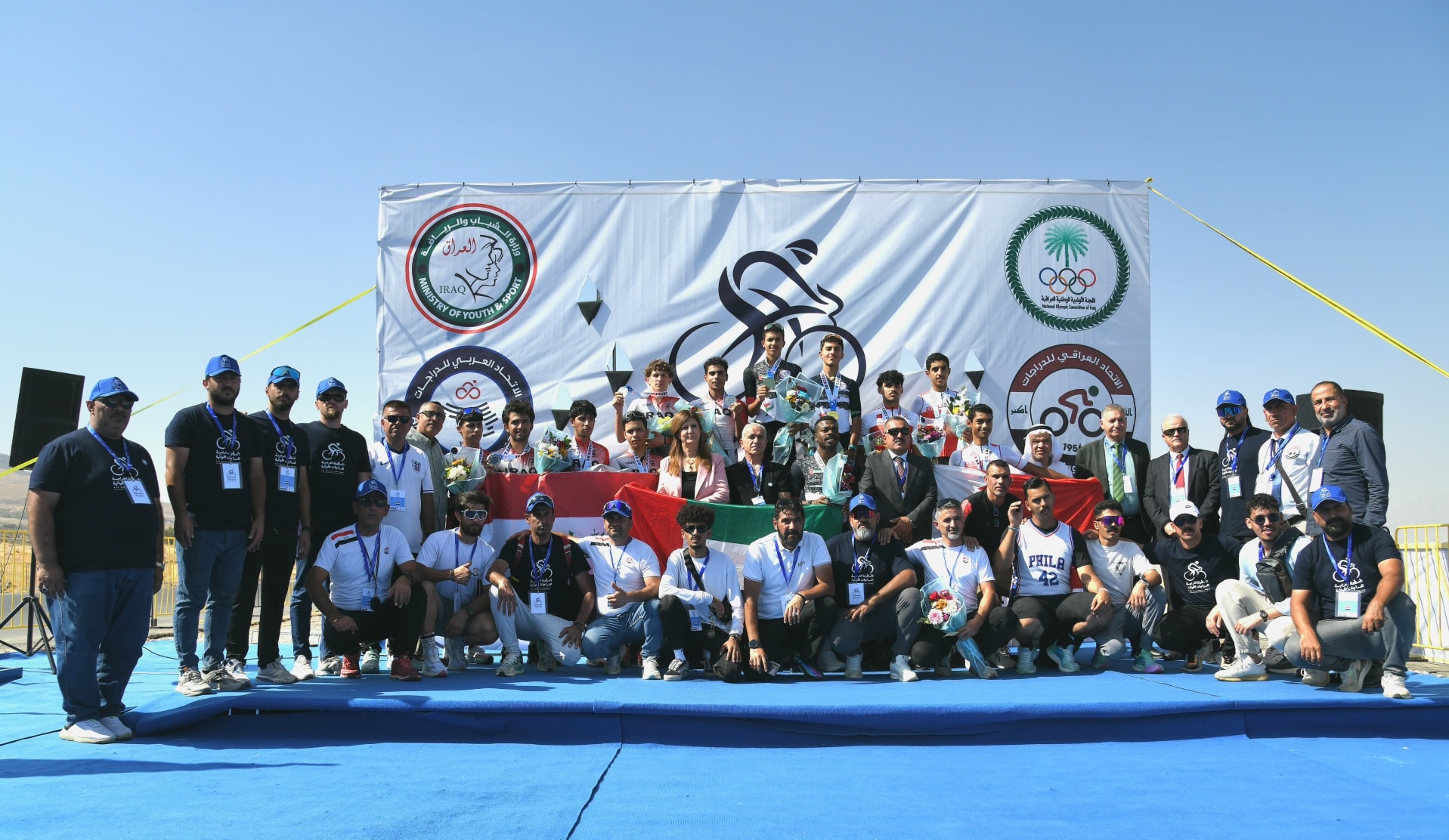 وفي منافسات الفرقي للسباق ذاته، فاز المنتخب الإماراتي بالوسام الذهبي، وحصل منتخب العراق على الوسام الفضي، ونال منتخب البحرين الوسام النحاسي. وشارك في توزيع الجوائز على اللاعبين الفائزين عضو المكتب التنفيذي للجنة الأولمبية العراقية، السيدة ليلى محمد أمين، والأمين العام للاتحاد العربي، السيد أشرف محمد، ورئيس الاتحاد العراقي للدراجات، الدكتور علي حميد، والمشرف العام على البطولة السيد خالد كوكش، وعضو اللجنة المنظمة للبطولة، الدكتور محسن عزيز، ونائب رئيس الاتحاد العراقي للعبة، السيد كاظم دليح، والأمين العام للاتحاد البحريني سيد شبر، والأمين العام للاتحاد الفلسطيني ناصر بدر، وعضوا الاتحاد العراقي فرقد جاسم وعبد القادر نور الدين.