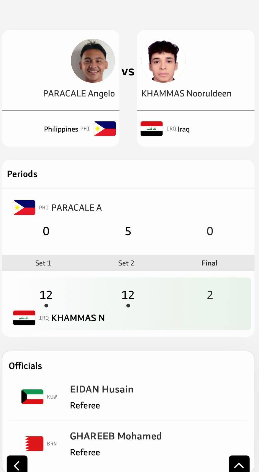 وجاءت المباراة ضمن منافسات دور ربع النهائي، حيث ظهر اللاعب نور الدين بمستوى عالٍ من التركيز والمهارة، ليحسم الشوط الأول بنتيجة ساحقة دون أن يتمكن الخصم من تسجيل أي نقطة. وفي الشوط الثاني، واصل حيدر أداءه المتماسك رغم محاولات الفلبين للعودة، ليُنهيه بنتيجة 12-5.