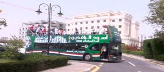 انطلاق حافلة المنتخب الوطني لبدء الاحتفالات الشعبية مع الجماهير